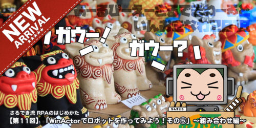 RPA BANKをご覧のみなさま、こんにちは!「RPAをはじめてみようかな」と思っている(でもIT関連少々苦手、という)みなさまに向けたお気楽RPA解説連載、「さるでき流 RPAのはじめかた」、第11回をお届けしておりま…