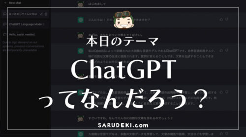 ChatGPTってなんだろう? ChatGPTと雑談するだけのブログBy 川崎 崇史2023年1月17日それでは、人工知能とお話しする会、はじめていきましょう。 ……と、言っても。最初は何を話せば良いのか見当もつきませんので、ChatGPTに「自分のこと」を話してもらうことにしましょうか。 ChatGPTの画面を開いて、「…